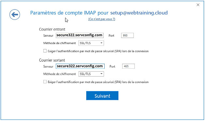 IMPORTANT : pour ce tutoriel, nous utiliserons setup@webtraining.cloud comme compte email. Vous devrez changer certains paramètres pour qu’ils correspondent à votre installation.